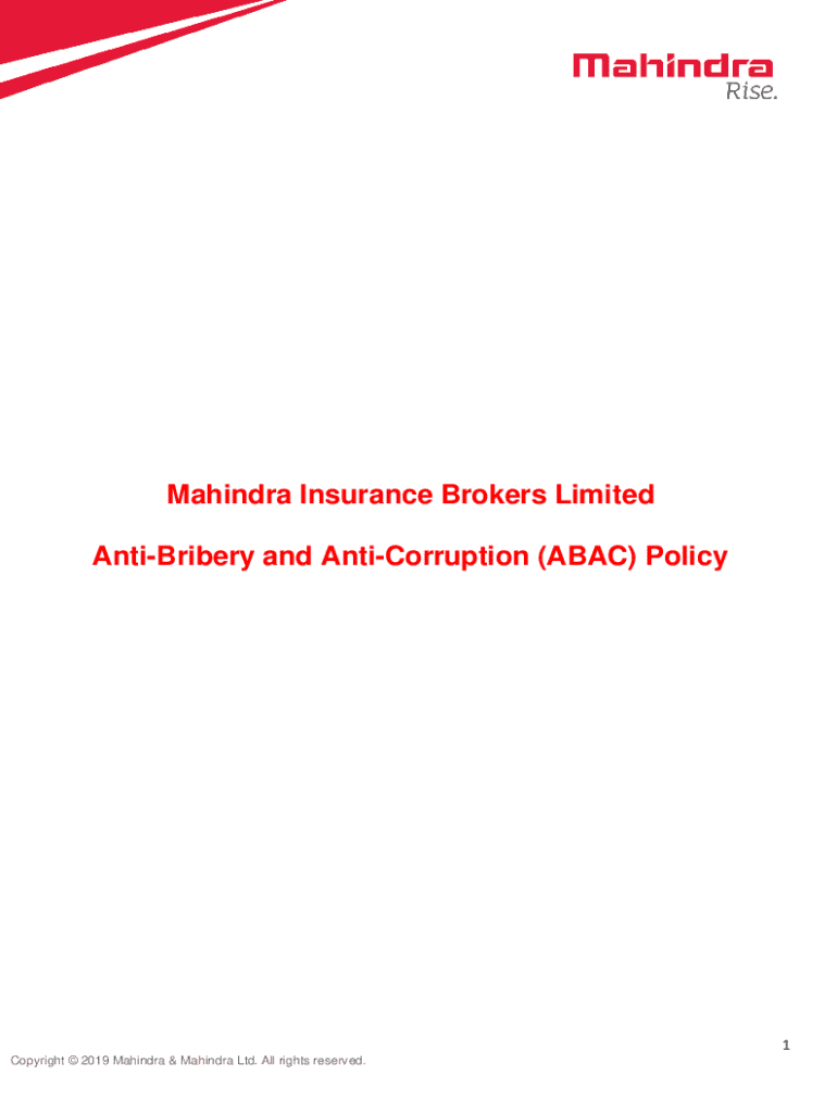 Copyright 2019 Mahindra & Mahindra Ltd. All rights reserved. Name of DocumentAntiBribery and Anticorrosion PolicyVersion1Issuing
