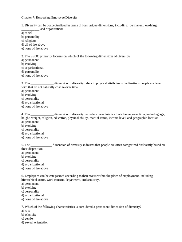 How should you fill out the Diversity can be conceptualized in terms of four template