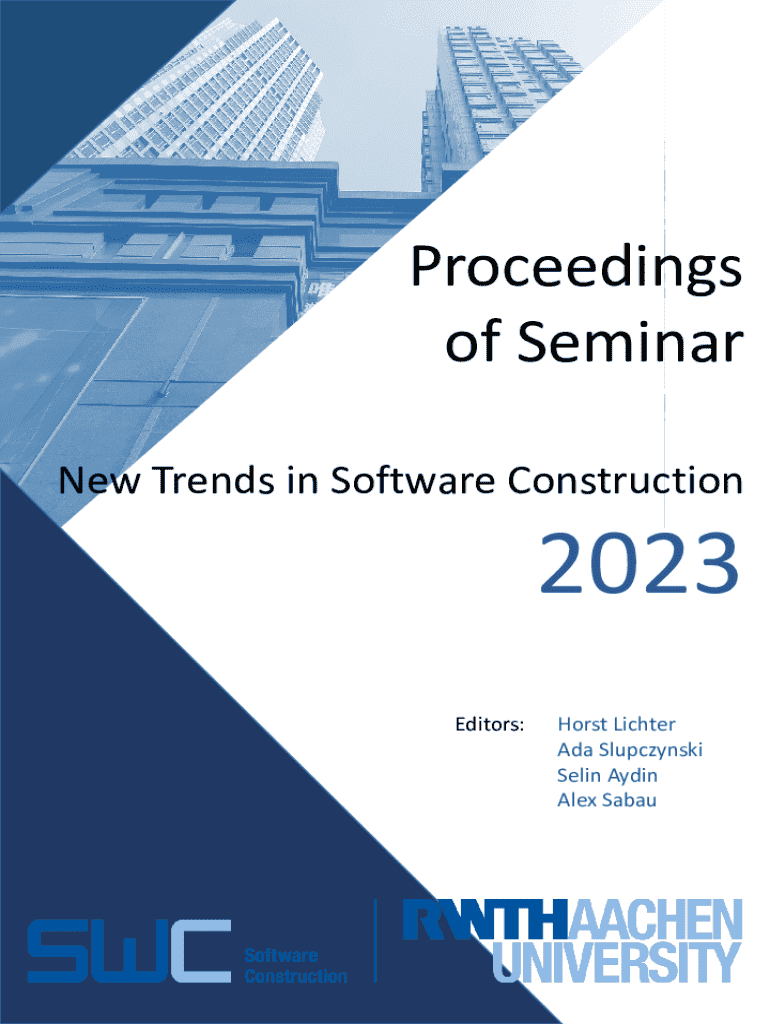 Proceedings of Seminar New Trends in Software Construction2023Editors:Horst Lichter Ada Slupczynski Selin Aydin Alex SabauTable of ContentsIlija Kovacevic, Bastian Levartz: How does software architecture