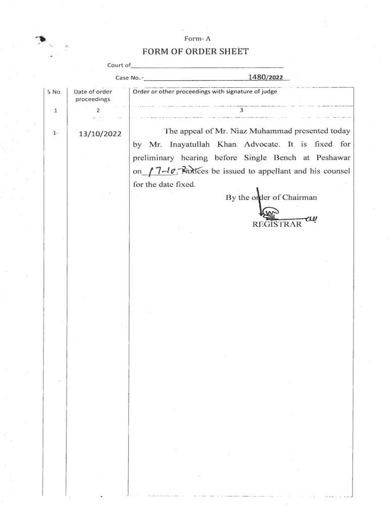 Form FORM OF ORDER SHEET