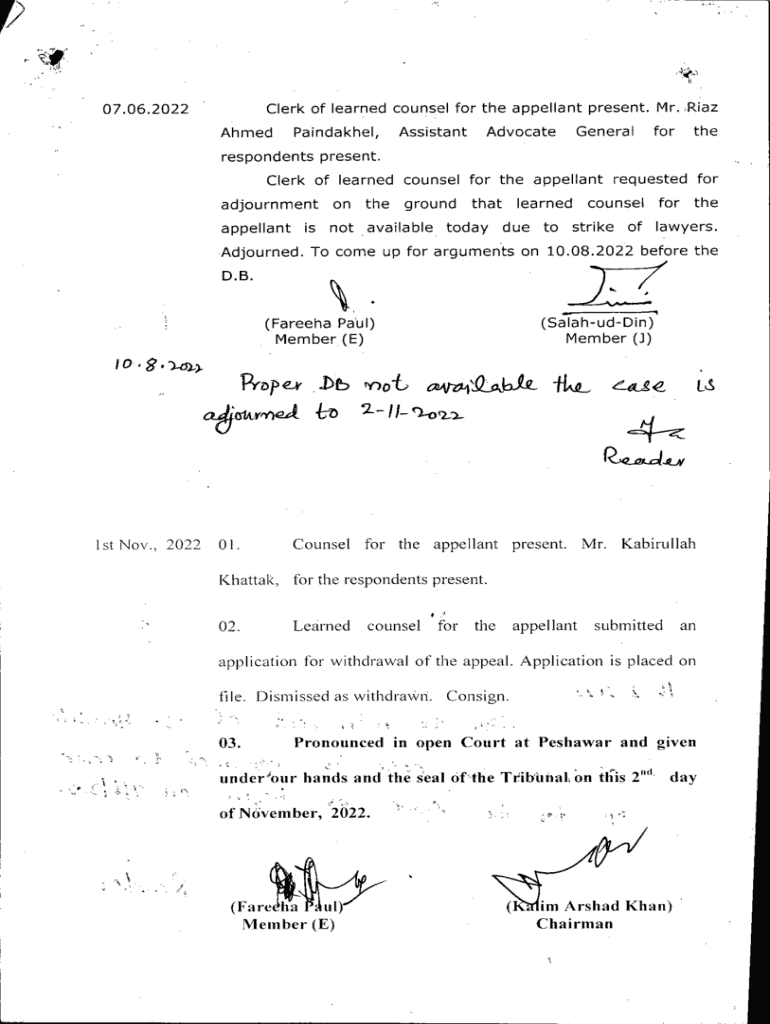 4^. Clerk of learned counsel for the appellant present. Mr. Riaz07.06.2022AhmedPaindakhel,AssistantAdvocateGeneralfortherespondents present.