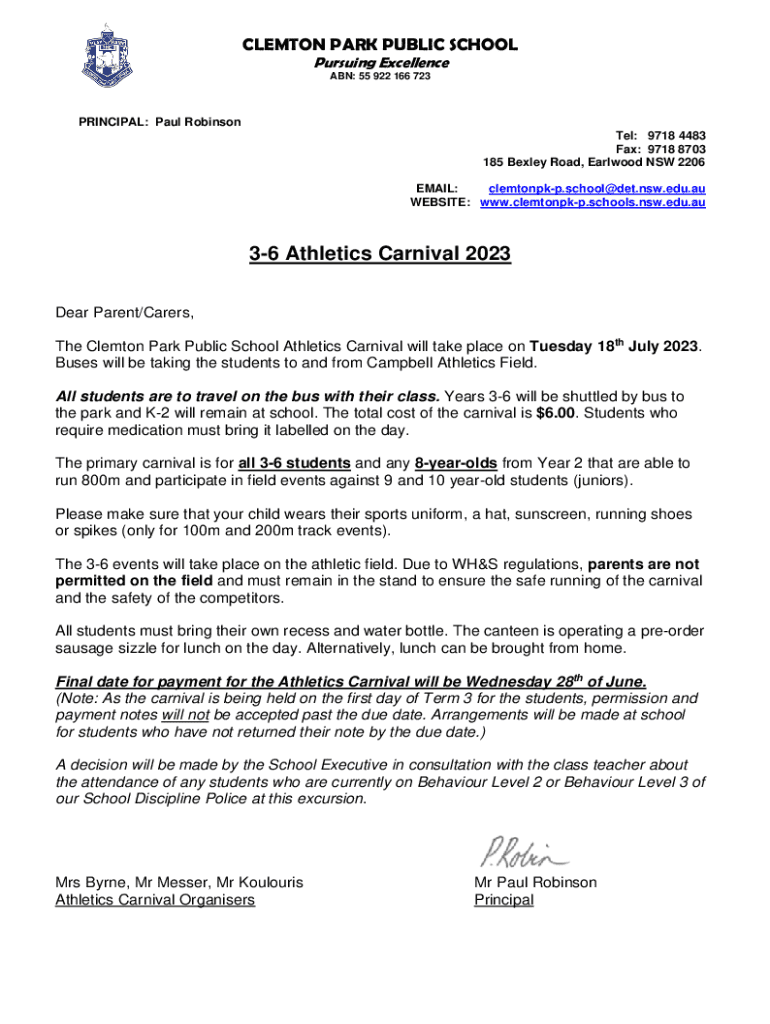 CLEMSON PARK PUBLIC SCHOOL Pursuing Excellence ABN: 55 922 166 723PRINCIPAL: Paul Robinson Tel: 9718 4483 Fax: 9718 8703 185 Bella Road, Earlwood NSW 2206 EMAIL: clemtonpkp.school@det.nsw.edu.au WEBSITE: