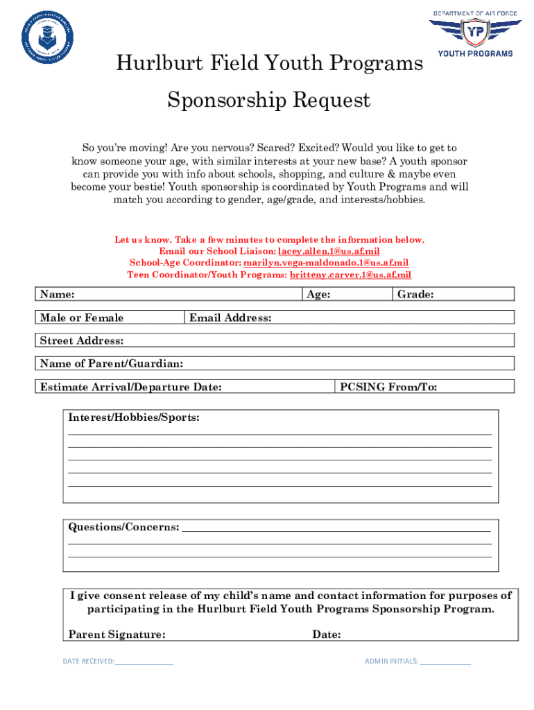 Get the free Hurlburt Field Youth Programs Sponsorship Request