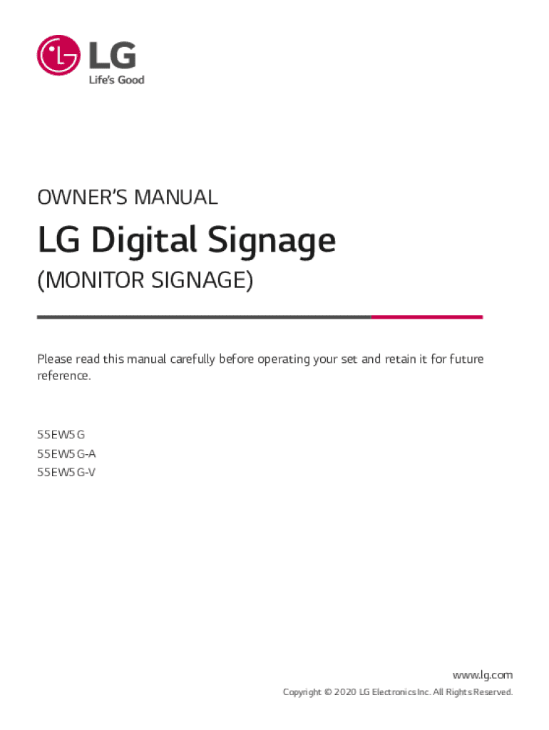Get the free 55EW5G-A LG Digital Signage Monitor Owner's Manual