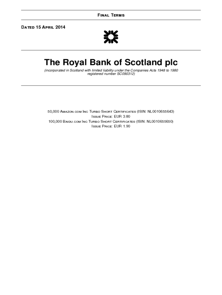 Final Terms Dated 15 April 2014The Royal Bank of Scotland plc (incorporated in Scotland with limited liability under the Companies Acts 1948 to 1980 registered number pC090312)50,000 Amazon.com Inc