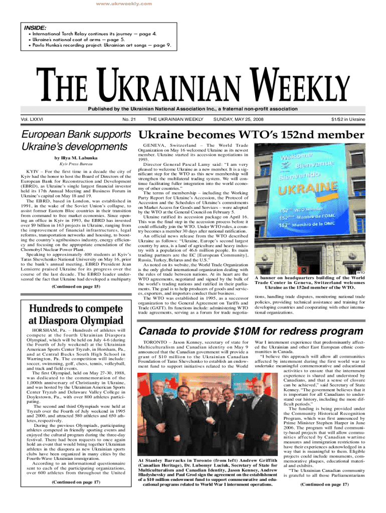 Fill out your form ukrainian weekly 2008 online with pdfFiller!