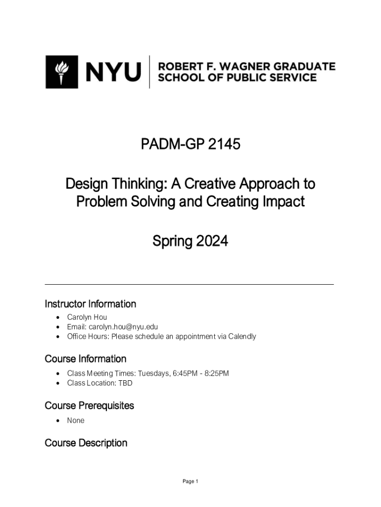 Get the free Design Thinking: A Creative Approach to Problem Solving ... - wagner nyu