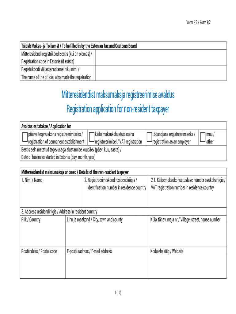 Form R2 / Form R2Tidab Make JA Tollgate / To be filled in by the Estonian Tax and Customs Board