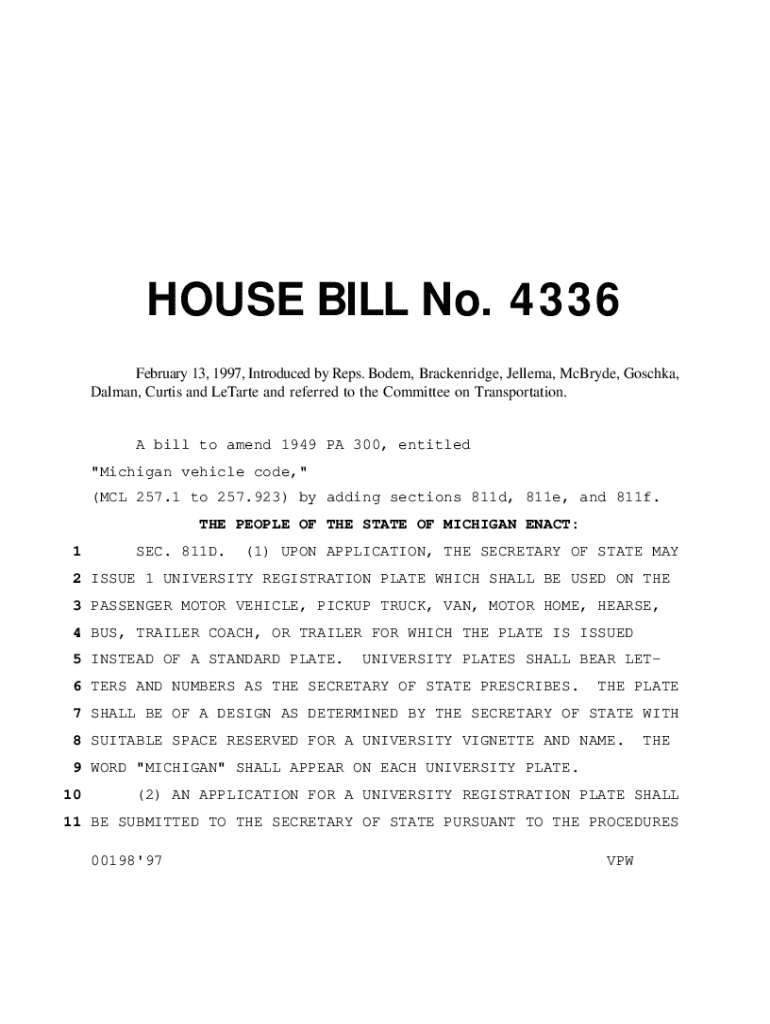 Get the free House Introduced Bill 4336 - Michigan Legislature - State of Michigan