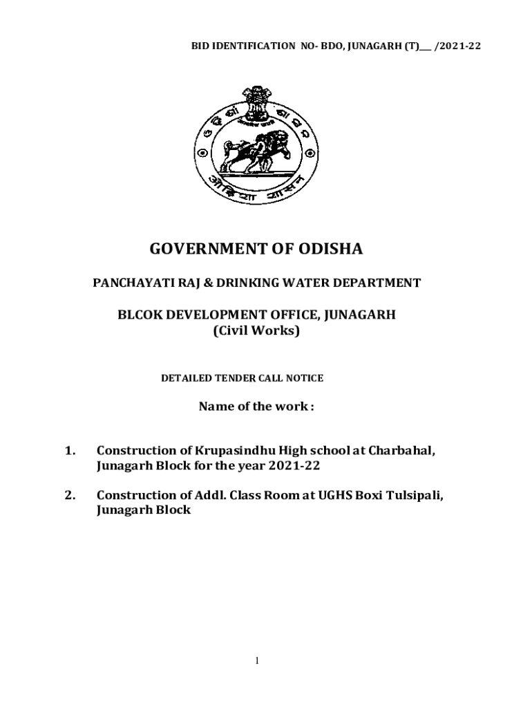 (Civil Works)DETAILED TENDER CALL Nickname of the