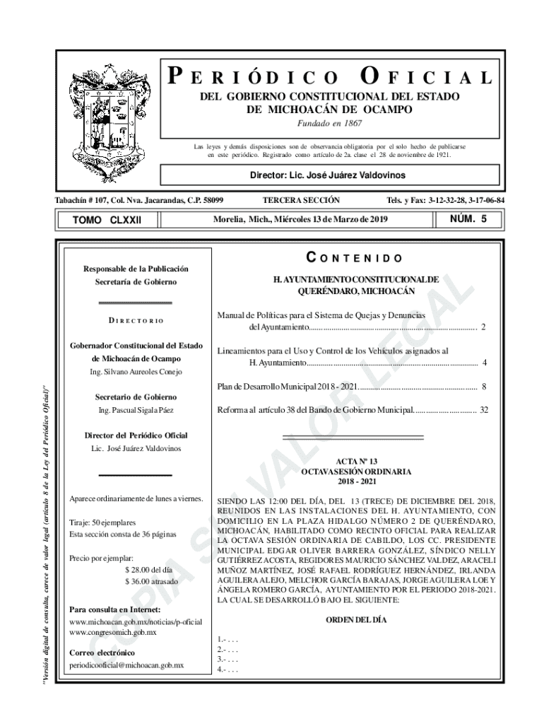 PE R I D I C OF I C I A DEL GOVERNOR CONSTITUTIONAL DEL ESTATE DE MICHOACÁN DE OCAMPO Fun dado en 1867 Las eyes yd ems dispositions son de observance obligatory POR El solo echo de publicans en ester