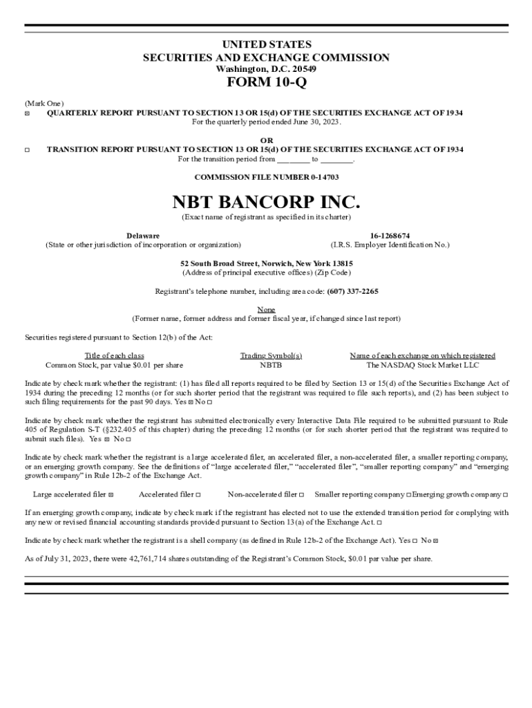 NBT Bancorp Inc is required to file regulatory documents with the appropriate governing bodies.