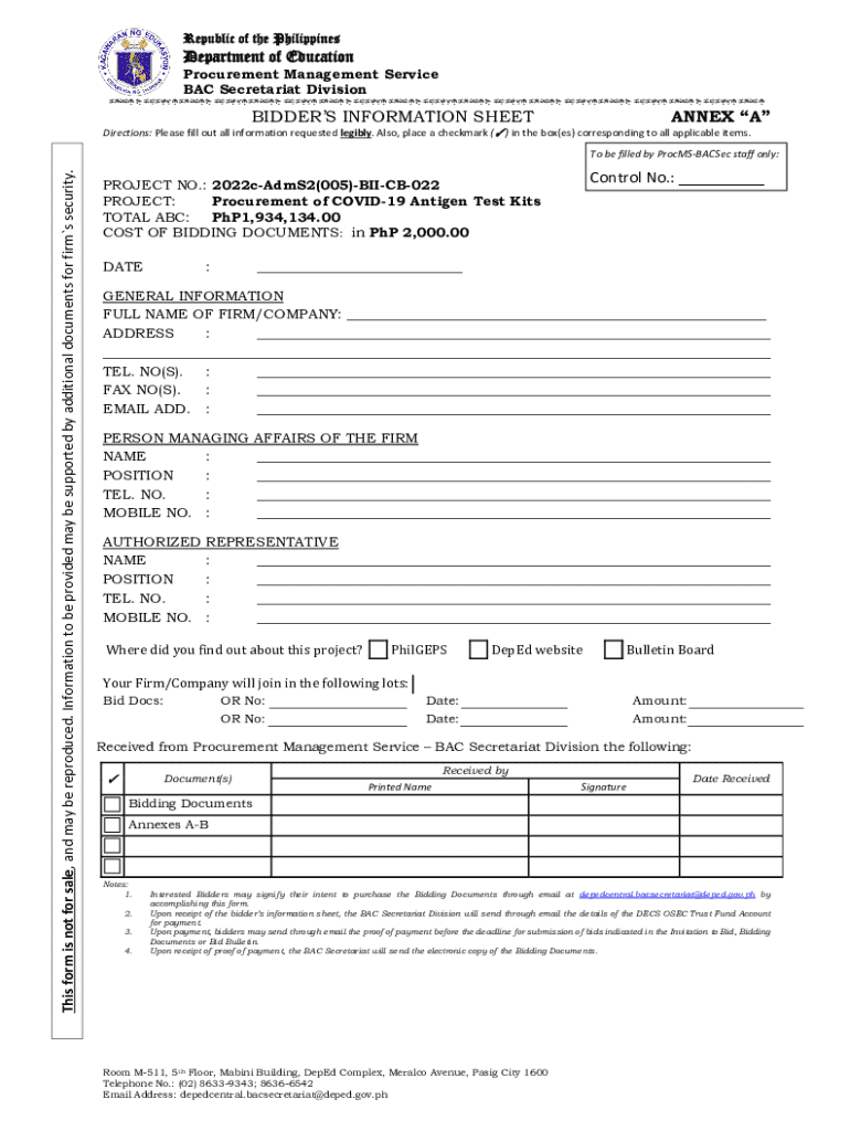 Get the free Procurement of COVID-19 Antigen Test Kits