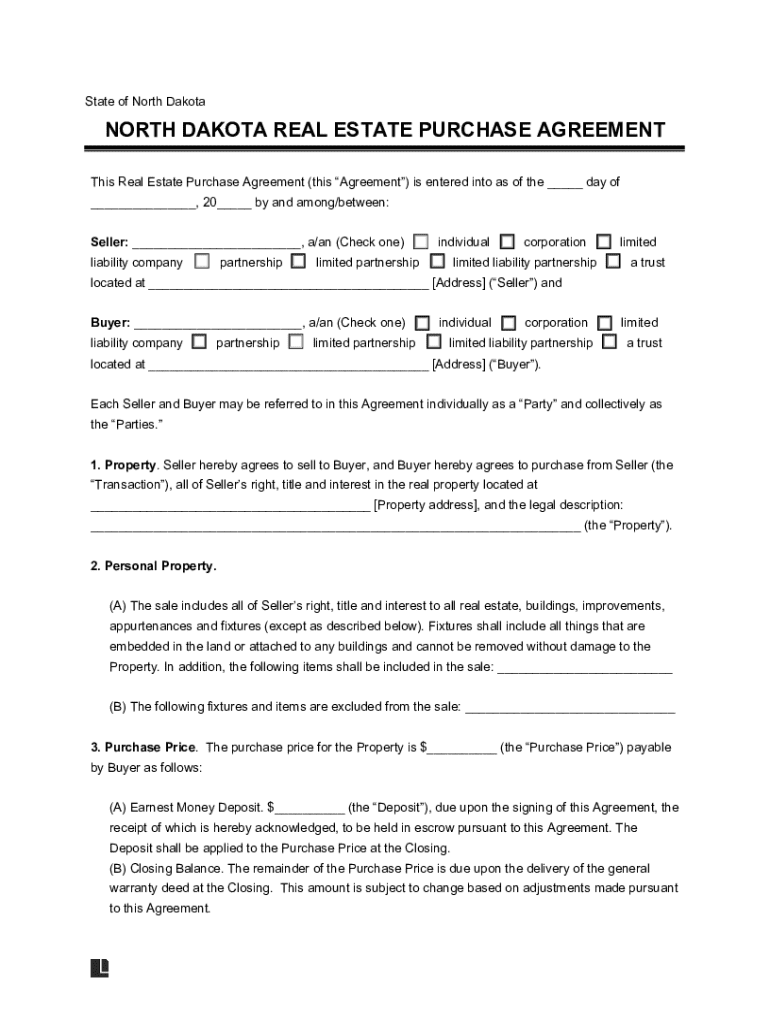 Get the free North Dakota Real Estate Purchase Agreement Template