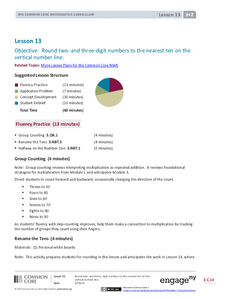 Lesson 13 3NYS COMMON CORE MATHEMATICS CURRICULUMLesson 13 Objective: Round two and three digit numbers to the nearest ten on the vertical number line. Related Topics: More Lesson Plans for the Common
