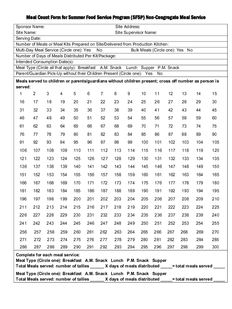 Get the free Non-Congregate SFSP Meal Service Count Form - education vermont