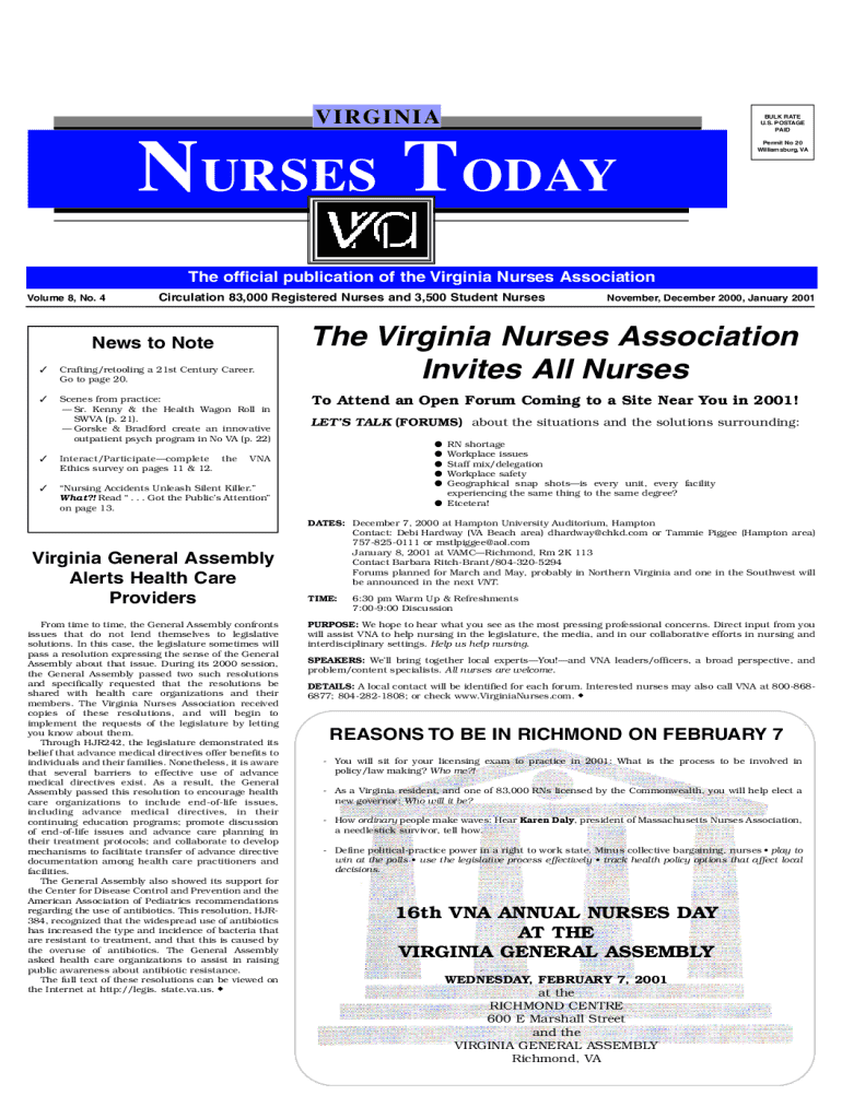 Volume 8, No. 4Circulation 83,000 Registered Nurses and 3,500