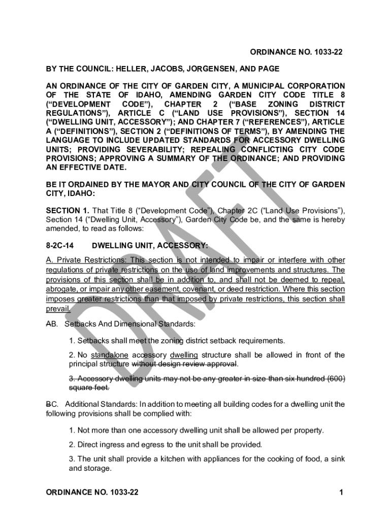 ORDINANCE NO. 103322 BY THE COUNCIL: HELLER, JACOBS, JORGENSEN, AND PAGE AN ORDINANCE OF THE CITY OF GARDEN CITY, A MUNICIPAL CORPORATION OF THE STATE OF IDAHO, AMENDING GARDEN CITY CODE TITLE 8 (DEVELOPMENT