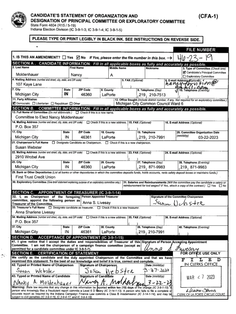 NSB*\'(CFA1)CANDIDATES STATEMENT OF ORGANIZATION AND