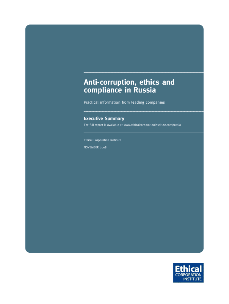 Anti-cethicscompliance in Russia summarylayout is a report that outlines the compliance measures taken by companies to prevent unethical practices.