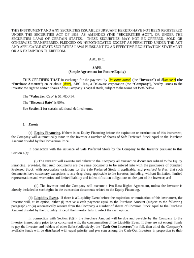 Pre-Money SAFE Equity Financing (Cap and Discount): frequently asked questions