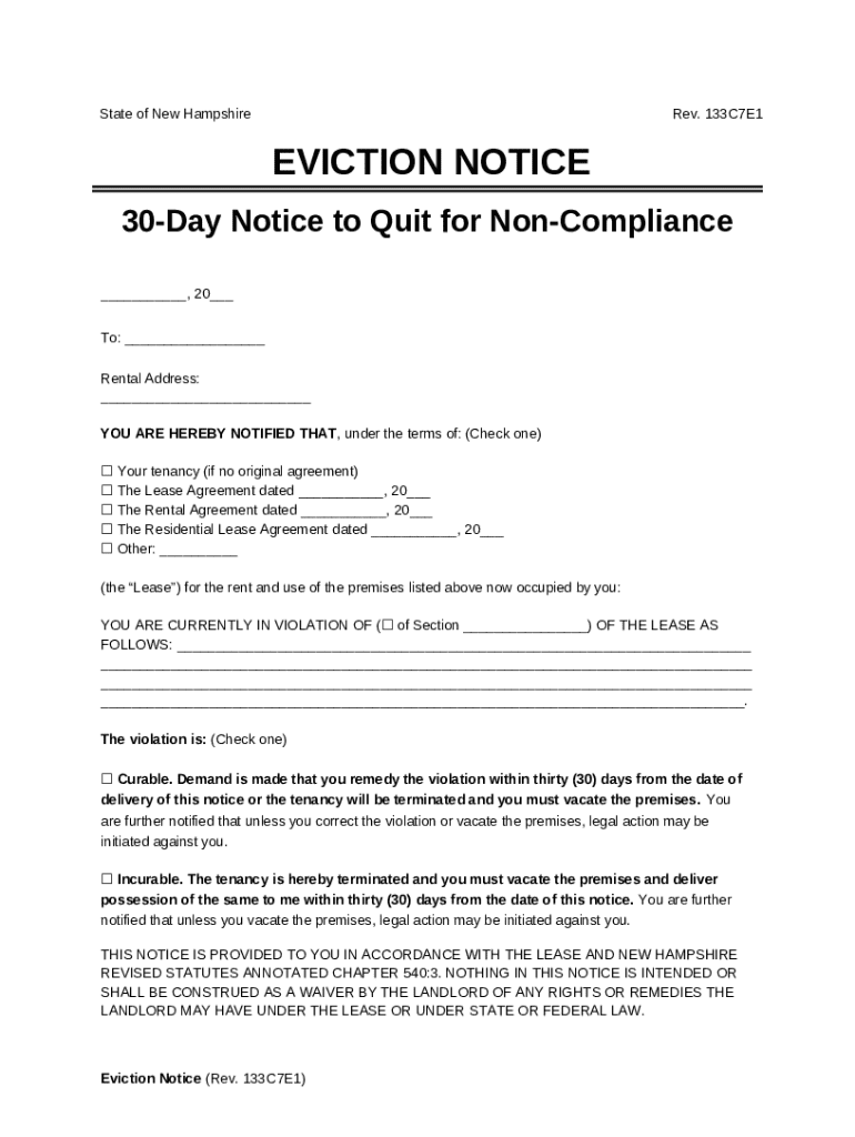 What is New Hampshire 30-Day Notice to QuitNon-Compliance Form?