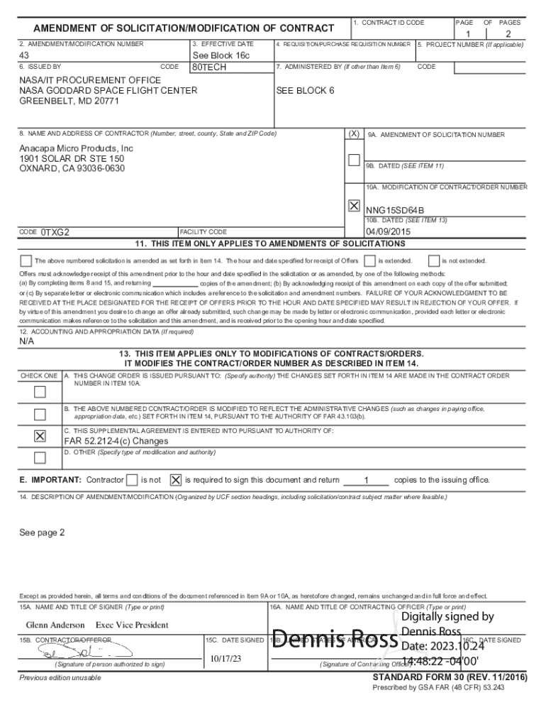 AMENDMENT OF SOLICITATION/MODIFICATION OF CONTRACT 2. AMENDMENT/MODIFICATION NUMBER43 6. ISSUED BYCODE1. CONTRACT ID CODEPAGEOFPAGES123. EFFECTIVE DATE4. REQUISITION/PURCHASE REQUISITION NUMBER5.