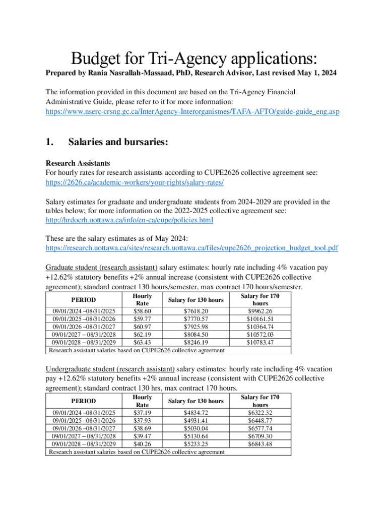 Budget for TriAgency applications: Prepared by Rania NasrallahMassaad, PhD, Research Advisor, Last revised May 1, 2024 The information provided in this document are based on the TriAgency Financial