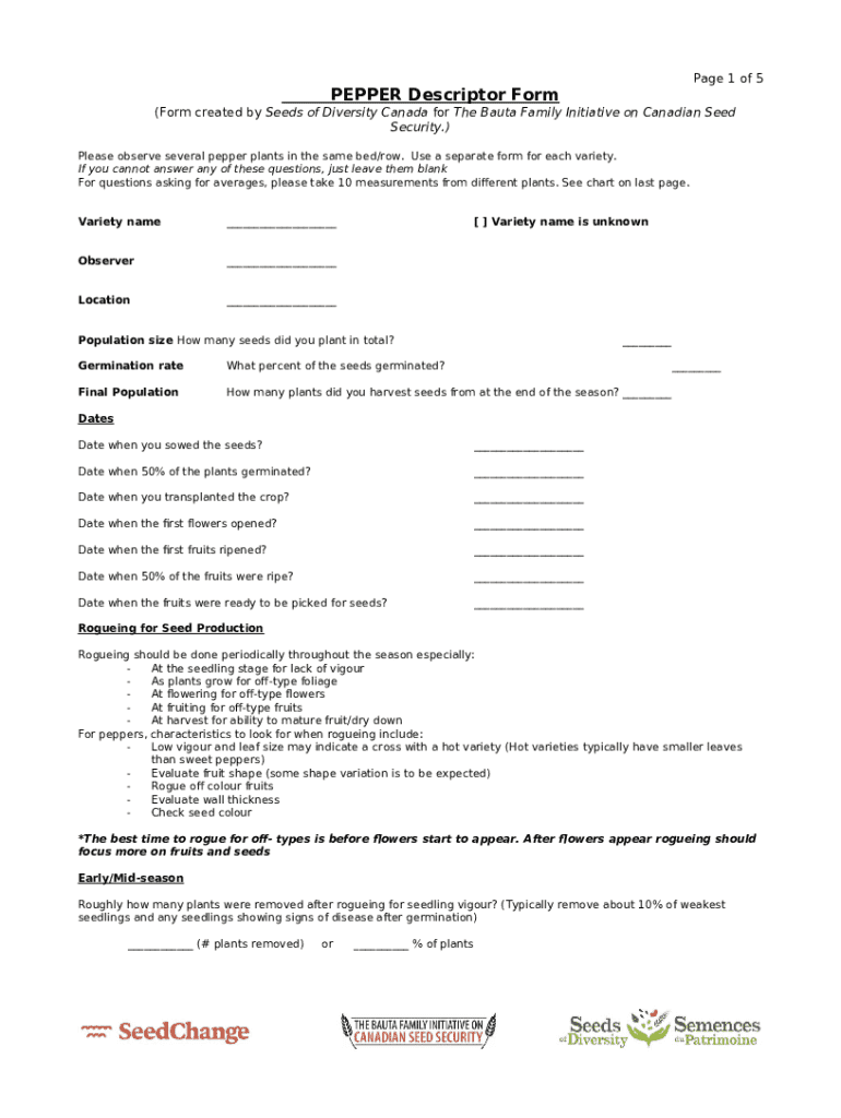 The PEPPER Observation for Seed Library Grow-Outs is a writable document that should be submitted to the relevant address in order to provide some information. It must be completed and signed, which may be done manually in hard copy, or via a particular solution like PDFfiller. This tool helps to complete any PDF or Word document directly in your browser, customize it according to your purposes and put a legally-binding e-signature. Right away after completion, you can easily send the PEPPER Observation for Seed Library Grow-Outs to the appropriate individual, or multiple individuals via email or fax. The template is printable too due to PDFfiller feature and options proposed for printing out adjustment. In both electronic and in hard copy, your form should have a neat and professional look. Also you can save it as the template for later, without creating a new blank form from scratch. All you need to do is to edit the ready sample.