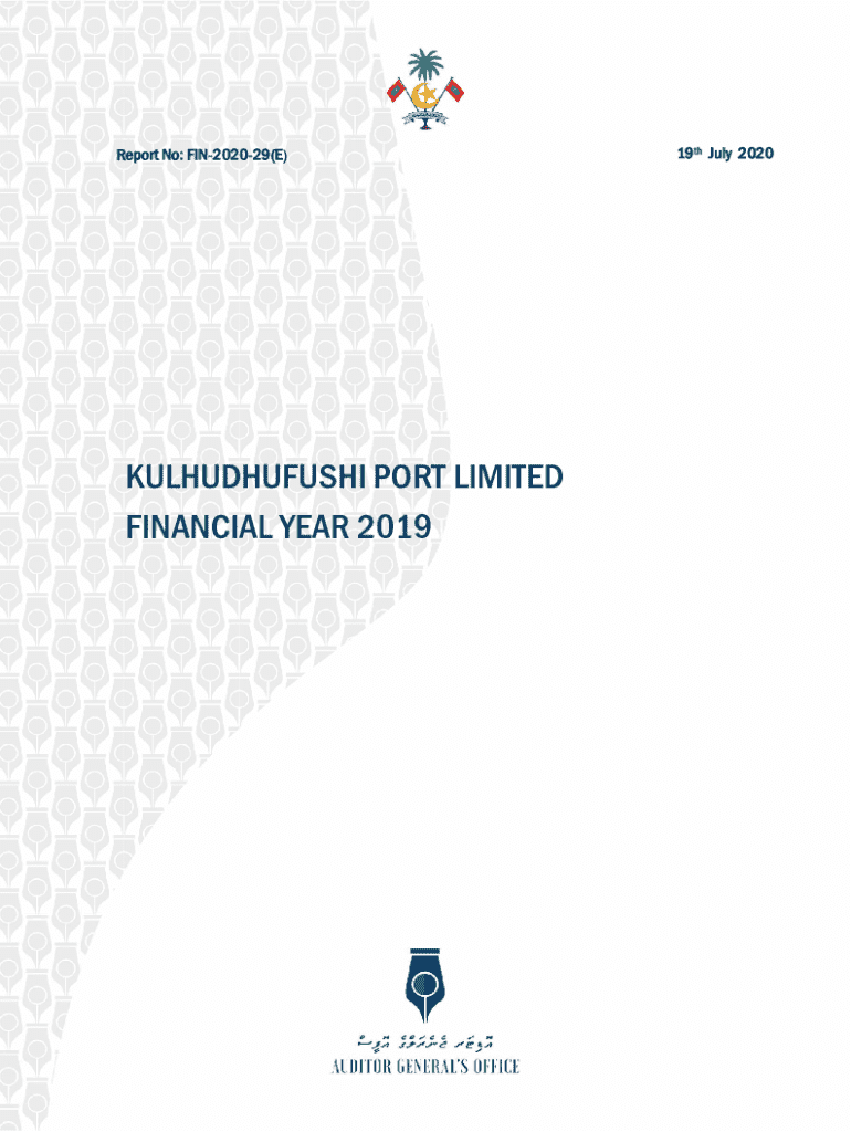 Report No: FIN202029(E)KULHUDHUFUSHI PORT LIMITED FINANCIAL YEAR 201919th July 2020Contents Auditor General\'s Report Statement of Comprehensive Income3of Financial Position .4Statement changes in