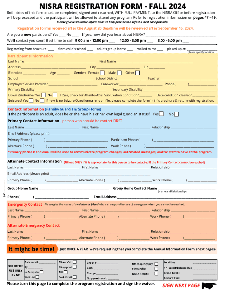 Get the free NISRA REGISTRATION FORM - FALL 2024