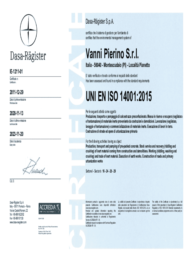 Get the free nated by a full Rgister's Certification Regula of ISO 14001 ...