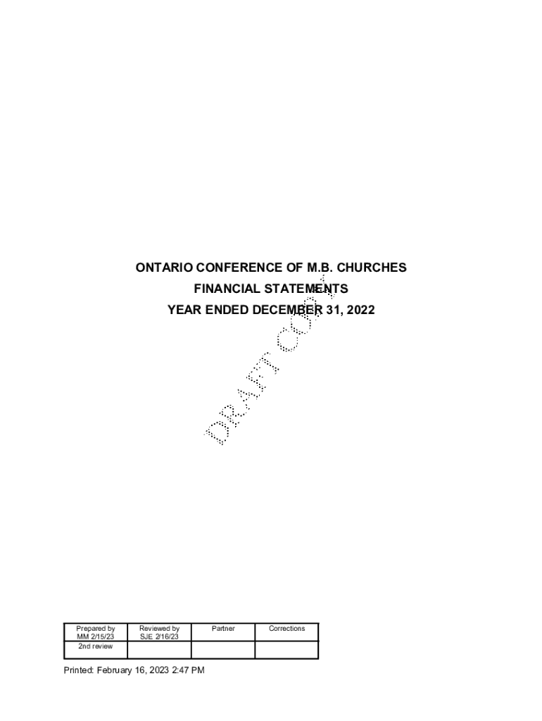 ONTARIO CONFERENCE OF M.B. CHURCHES