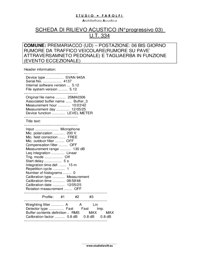 STUDIOFAROLFIArchitettura AcusticaSCHEDA DI RELIEVE ACOUSTIC (N progressive 03)