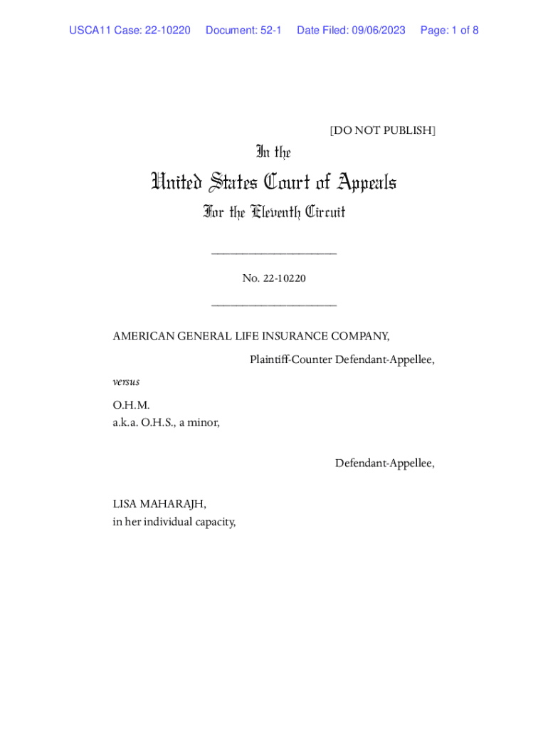 USCA11 Case: 2210220Document: 521Date Filed: 09/06/2023Page: 1 of 8[DO NOT PUBLISH]In reunited States Court of Appeals For the Eleventh Circuit ___ No. 2210220 ___ AMERICAN GENERAL LIFE INSURANCE
