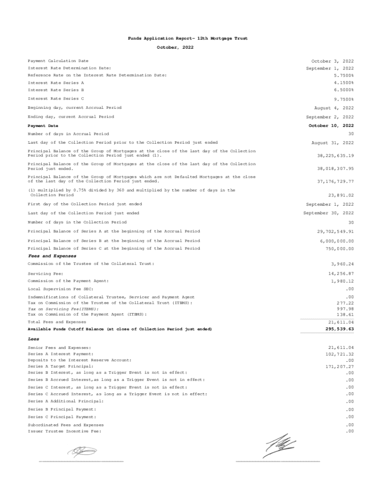 Funds Application Report 12th Mortgage TrustOctober, 2022 October 3, 2022 September 1, 2022 5.7500%Payment Calculation Date Interest Rate Determination Date: Reference Rate on the Interest Rate Determination