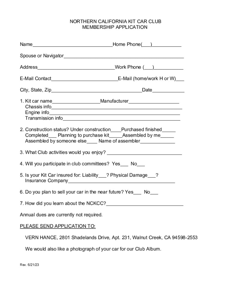 Get the free NORTHERN CALIFORNIA KIT CAR CLUB MEMBERSHIP ...