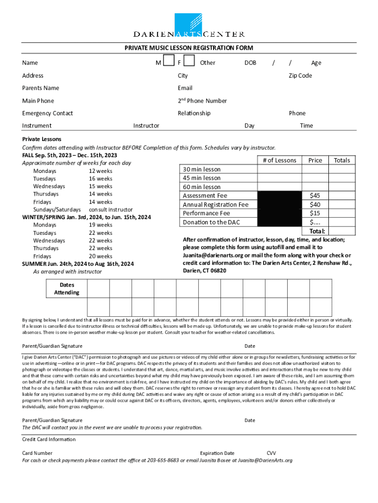 PRIVATE MUSIC LESSON REGISTRATION FORM