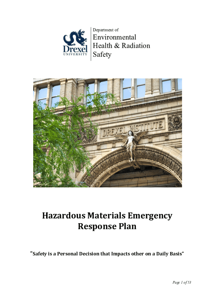 Department environmental Health & Radiation SafetyHazardous Materials Emergency Response Plan Safety is a Personal Decision that Impacts other on a Daily Basis Page 1 of 531.0 Introduction The Hazardous