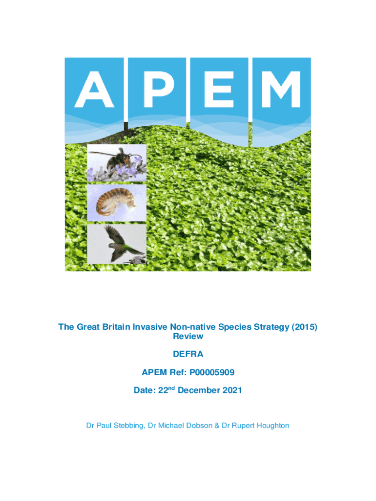 The Great Britain Invasive Nonnative Species Strategy (2015) Review DEFRA APEM Ref: P00005909 Date: 22nd December 2021Dr Paul Stebbing, Dr Michael Dobson & Dr Rupert HoughtonClient:Department for