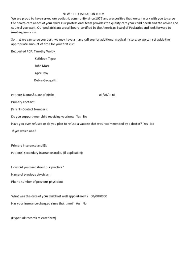 Get the free NEW PT REGISTRATION FORM We are proud to have ...