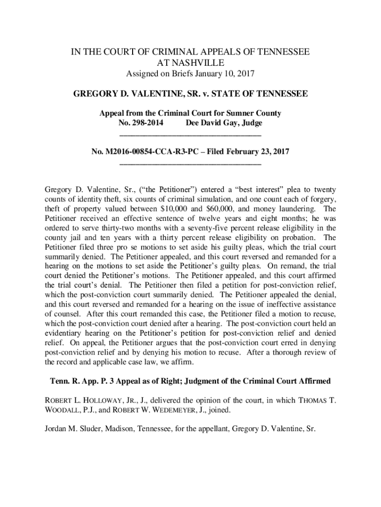Get the free Gregory D. Valentine, Sr. v. State of Tennessee