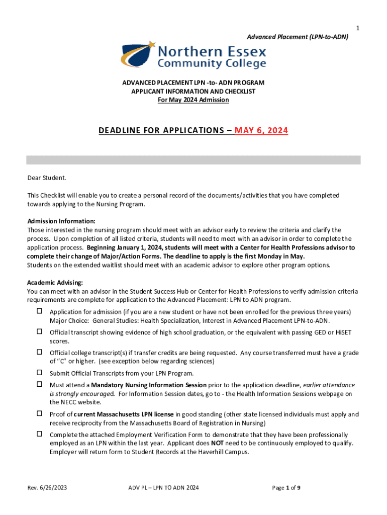 Get the free ADVANCED PLACEMENT LPN -to- ADN PROGRAM