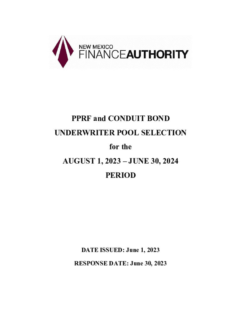 PPRF and CONDUIT BOND UNDERWRITER POOL SELECTION for the AUGUST 1, 2023 JUNE 30, 2024 PERIODDATE ISSUED: June 1, 2023 RESPONSE DATE: June 30, 2023TABLE OF CONTENTS TITLE I.PAGEINTRODUCTION ............................................................................................................................