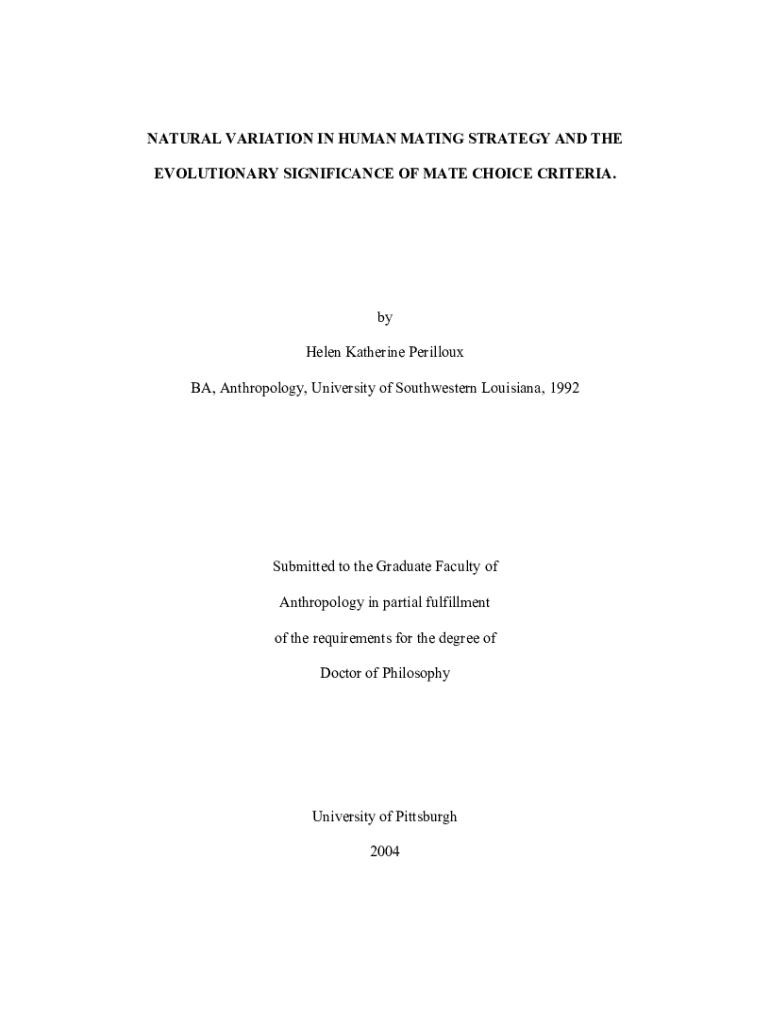 Get the free natural variation in human mating strategy and the - d-scholarship pitt