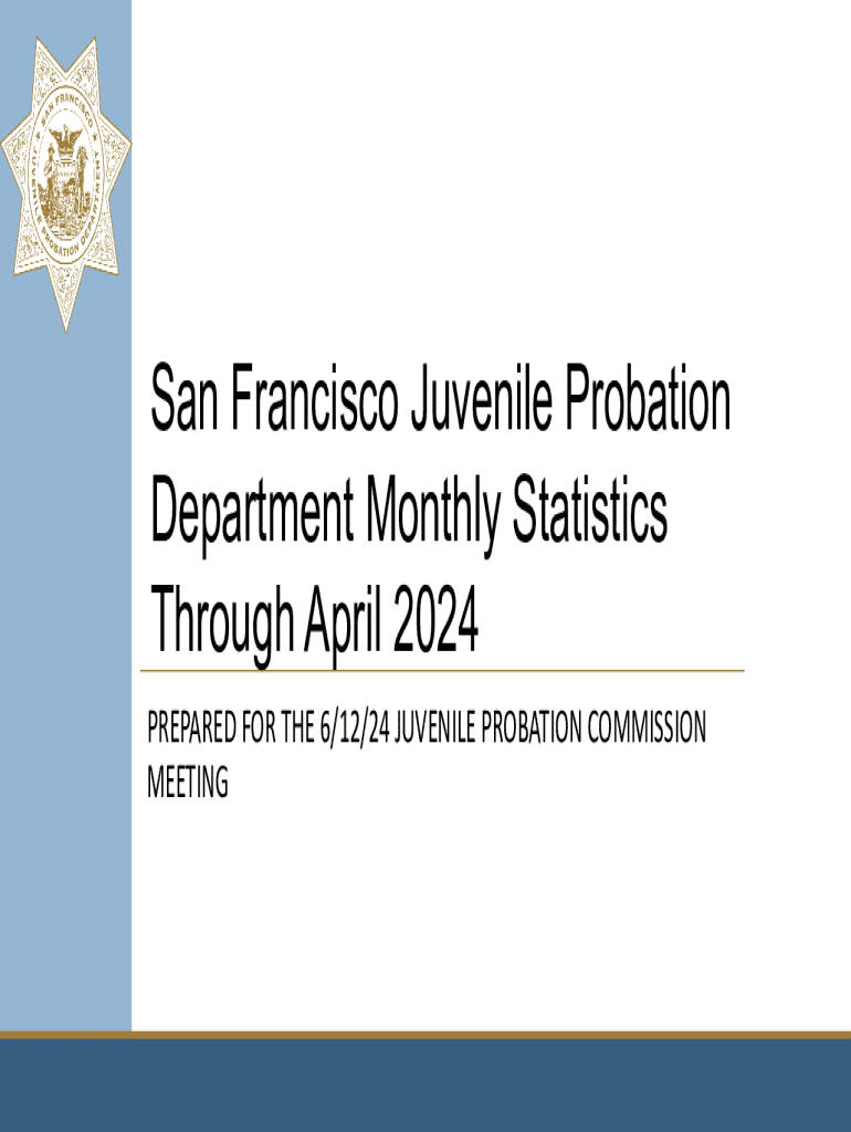 San Francisco Juvenile Probation Department Monthly Statistics Through April 2024 PREPARED FOR THE 6/12/24 JUVENILE PROBATION COMMISSION MEETINGMonthly Data Report The Juvenile Probation Department