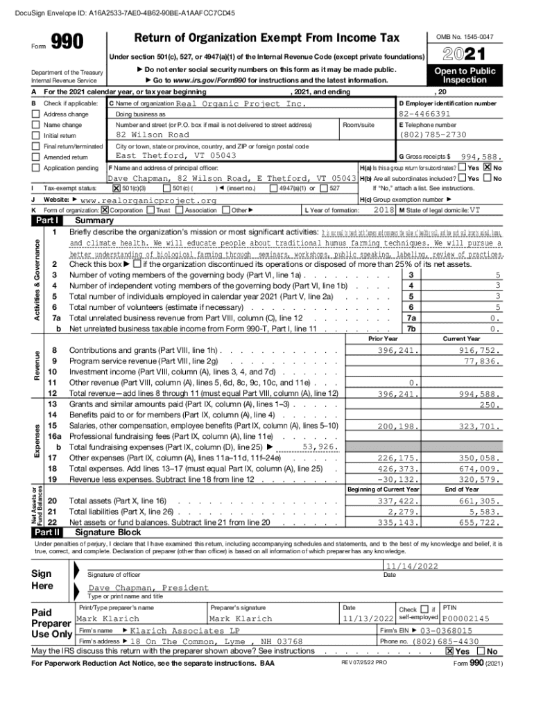 DocuSign Envelope ID: A16A25337AE04B6290BEA1AAFCC7CD45Form990Return of Organization Exempt From Income Tax