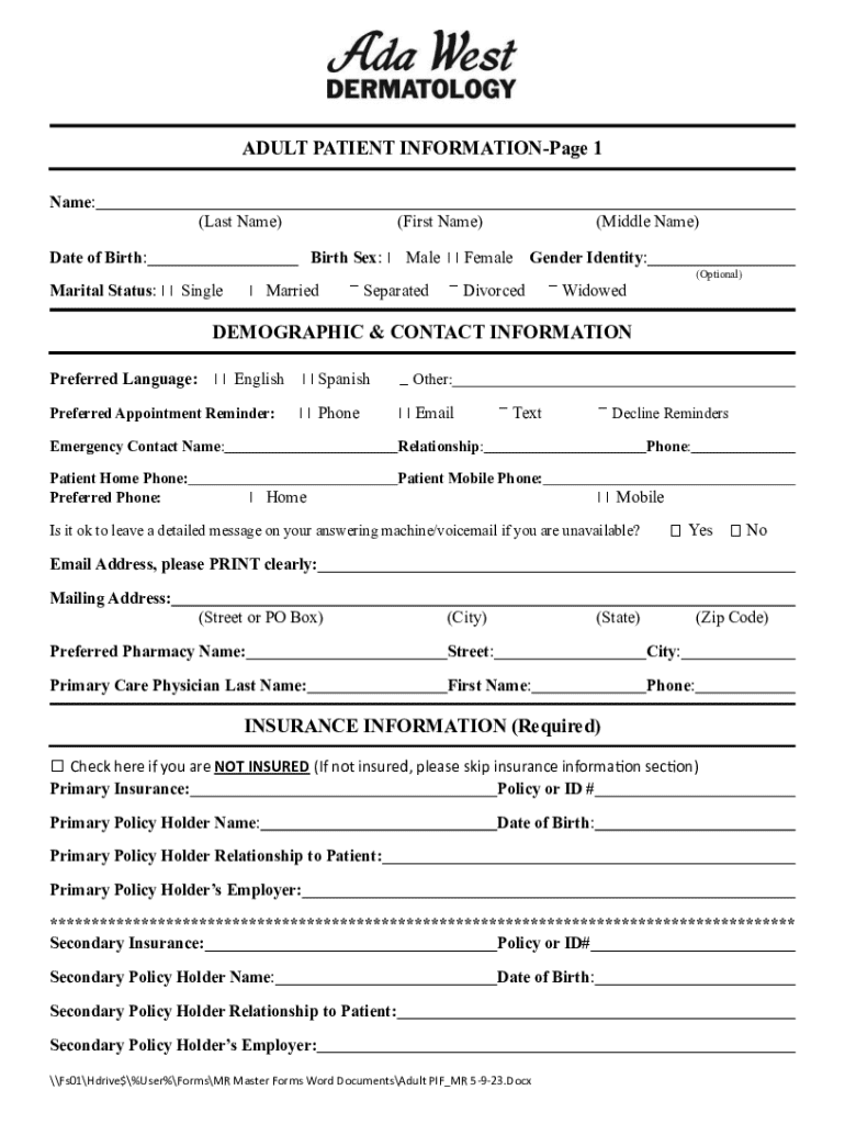 ADULT PATIENT INFORMATION Page 1
