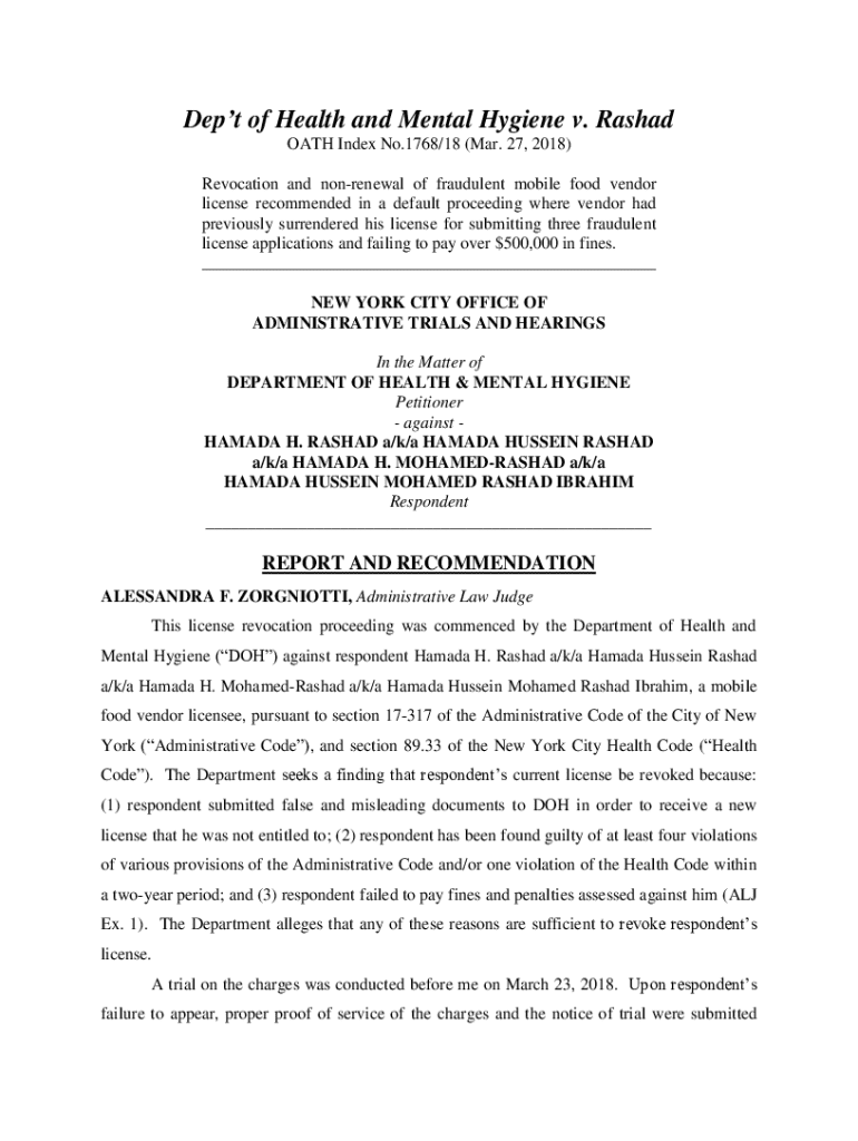 Get the free Dep't of Health and Mental Hygiene v. Rashad - archive citylaw