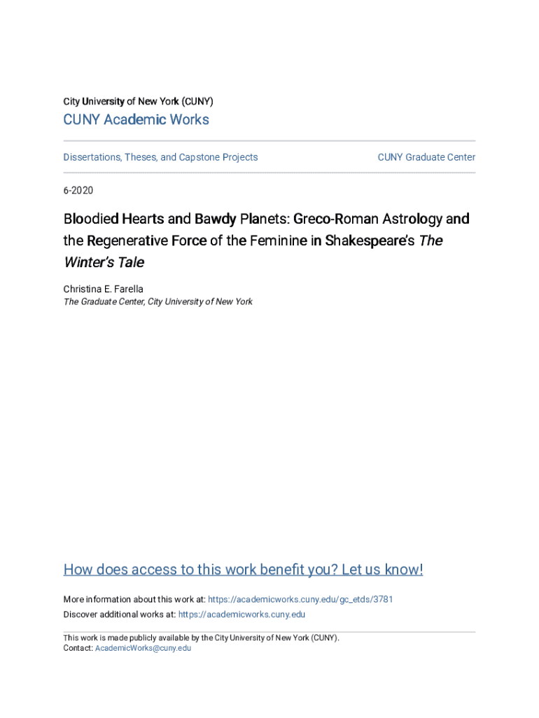 Dissertations, Theses, and Capstone ProjectsCUNY Graduate Center62020Bloodied Hearts and Bawdy Planets: Greco-Roman Astrology and
